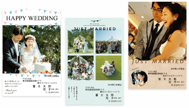 【有料サービス】結婚報告ハガキも大進にてご注文いただけます。