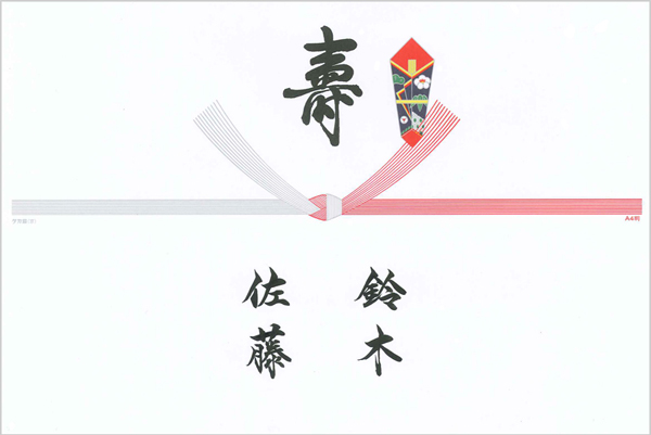結婚引出物、結婚内祝いをご購入の方に無料のサービスです。お好みのデザイン包装紙からお選びいただけます。熨斗(のし)は結び切りの10本の水引。
