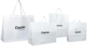 持ち帰り用の手さげ袋はサービスでおつけ致します。お気軽にお申しつけください。